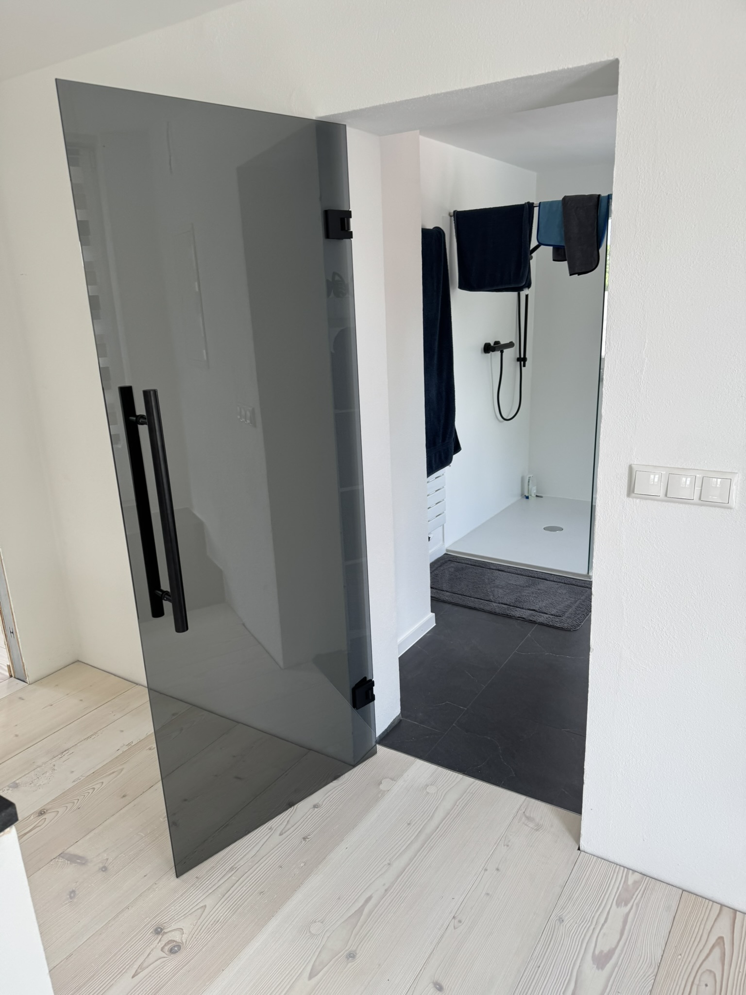 Passend zur Glastüre bieten wir auch die Komplettmontage inkl. Türzargen an.